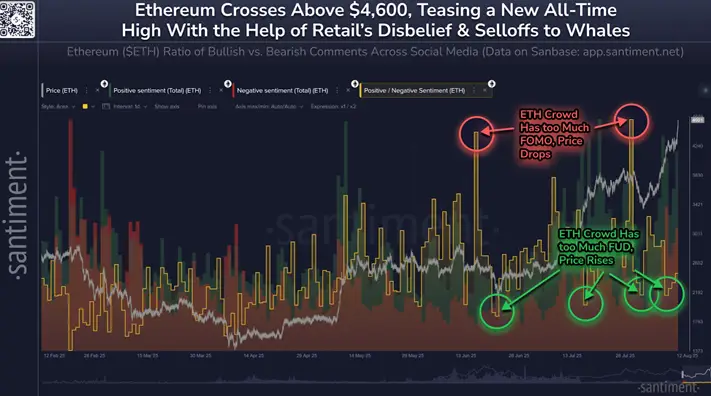 Несмотря на стремительное ралли эфира, настроения мелких инвесторов в отношении перспектив второй по капитализации криптовалюты ухудшились, рассказали эксперты ончейн-платформы Santiment.