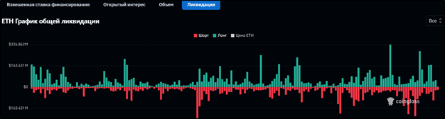 Продолжение снижения эфира, также как и биткоина, объясняется в том числе осторожными ожиданиями от выступления Джерома Пауэлла. Но были и другие важные негативные факторы. На неделе наблюдалось значительное число ликвидаций (принудительного закрытия) лонговых (на покупку) позиций — на $507,25 млн. Это в 1,7 раза больше, чем шортовых ликвидаций.