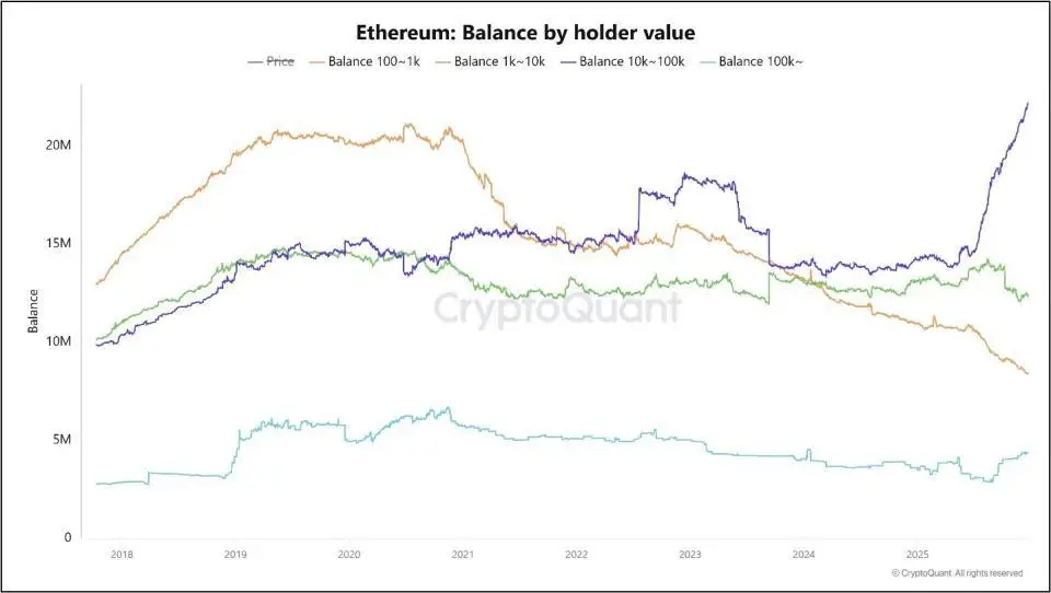 Интересно, что, несмотря на стагнацию цены, крупные игроки продолжают скупать эфир. Количество адресов, содержащих от 10000 до 100 000 ETH, с апреля выросло на 60%. Более того, кошельков с балансом свыше 100 000 ETH с августа стало больше на 50%. А вот адресов, которые хранят до 10000 ETH, наоборот, становится все меньше. Обычно это предвещает рост монеты, так как китам нет смысла закупаться эфиром, если они считают, что тот должен дешеветь.