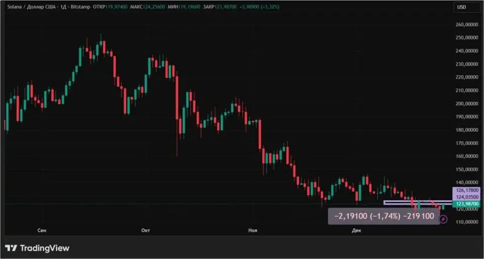 Конец 2025 года не принес рынку крипторалли. Инвесторы сейчас стремятся к наиболее безопасным стратегиям распределения денежных средств, с минимальной ориентацией на цифровые активы. Вместе с тем, обвала на крипторынке тоже не случилось, а цены биткоина, эфира и Solana изменились незначительно.