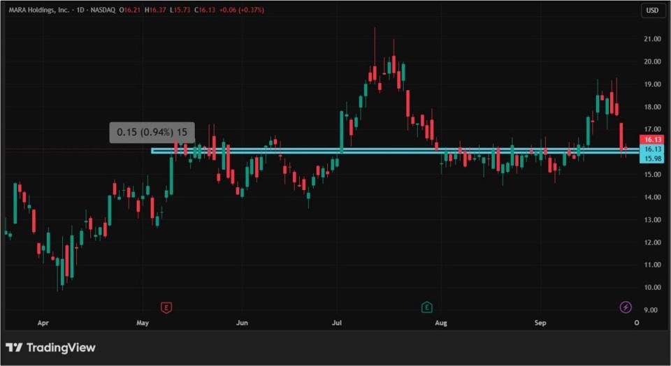 Открывает список крупнейших криптокомпаний майнер MARA (бывшая Marathon Digital) с рыночной капитализацией $5,97 млрд. Ее акции в сентябре прибавили лишь 0,94%. При этом, в первой половине месяца они демонстрировали серьезный рост, торгуясь выше $19. В целом динамика MARA повторяла движение биткоина, что не удивительно, так как чем выше цена BTC, тем выше прибыль компании. Однако после снижения ключевой ставки на 25 базисных пунктов весь рост сошел на нет. Очевидно, инвесторы были настроены на более решительные шаги от регулятора.