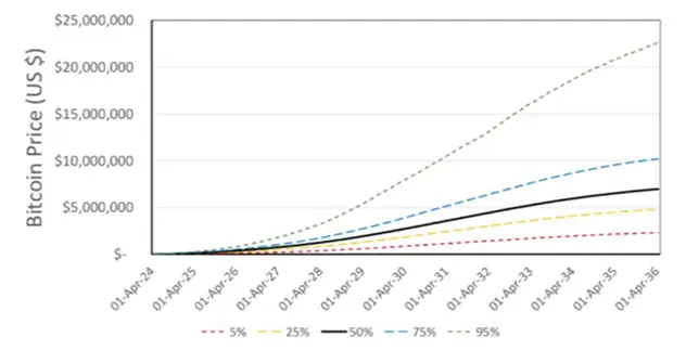 Аналитики компании Satoshi Action Education Мюррей А. Радд (Murray Rudd) и Деннис Портер (Dennis Porter) объявили, что с вероятностью 75% цена биткоина превысит $4,81 млн к апрелю 2036 года.